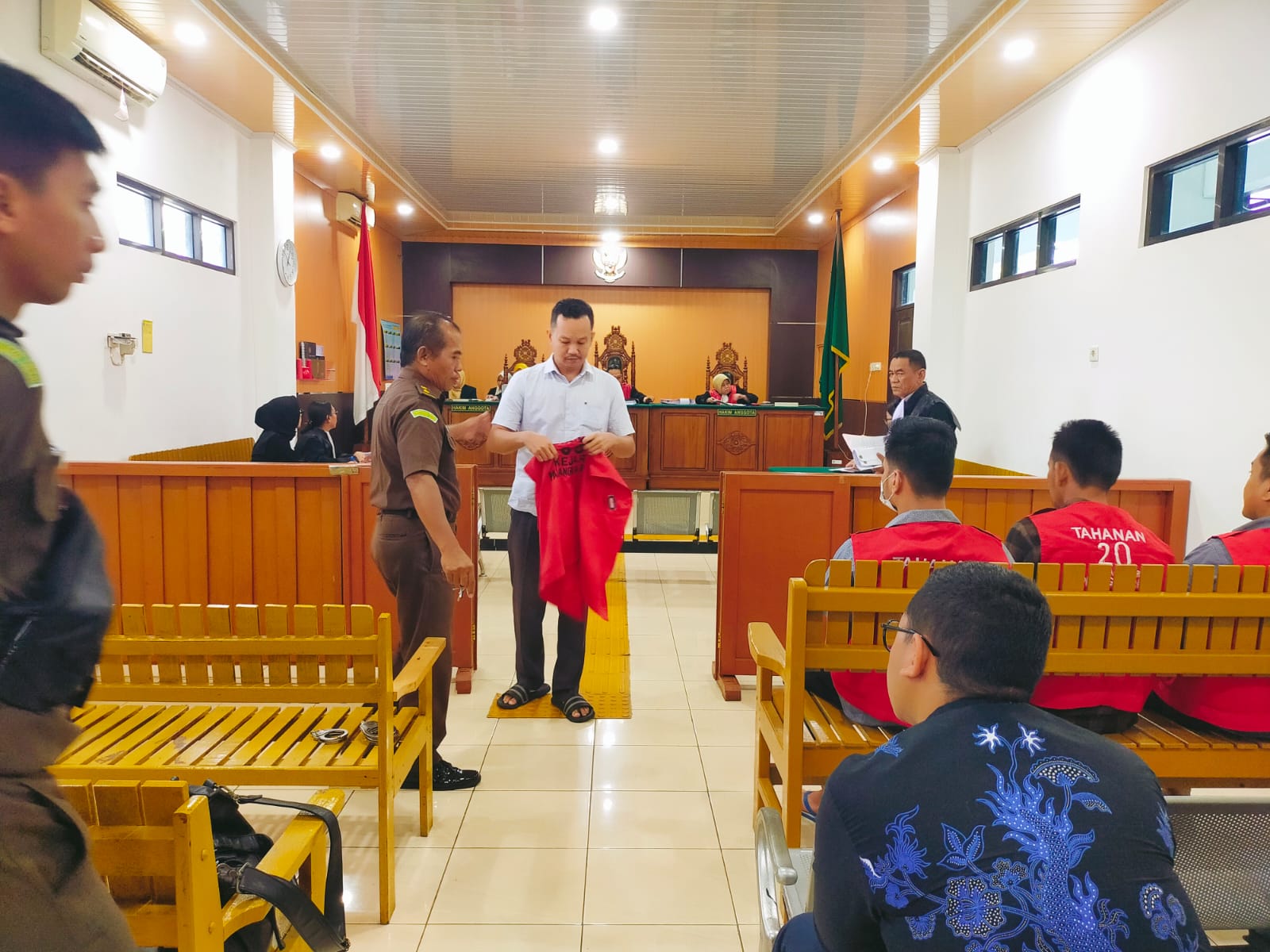 Sidang dipimpin majelis hakim yang diketuai Henddy Belliyaandi. Terdakwa hadir mengenakan kemeja putih dan didampingi penasihat hukum Yohana serta Dani.