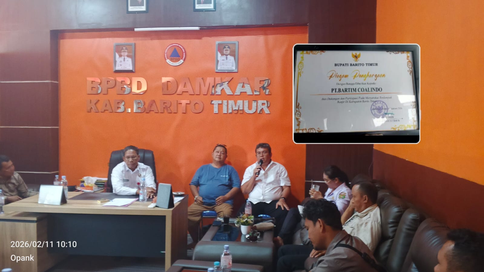 BARITO TIMUR — Pemerintah Kabupaten Barito Timur melalui Badan Penanggulangan Bencana Daerah (BPBD) Damkar menyampaikan klarifikasi sekaligus permintaan maaf kepada masyarakat terkait polemik pemberian piagam penghargaan kepada PT Bartim Coalindo. Piagam tersebut diberikan atas dukungan perusahaan dalam membantu penanganan warga terdampak banjir, Rabu (11/2/2026).