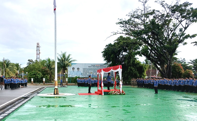 APEL GABUNGAN-Bupati Barito Utara H Shalahuddin pimpin apel gabungan lingkup Pemkab Barito Utara di halaman kantor bupati, Rabu (18/2/2026).