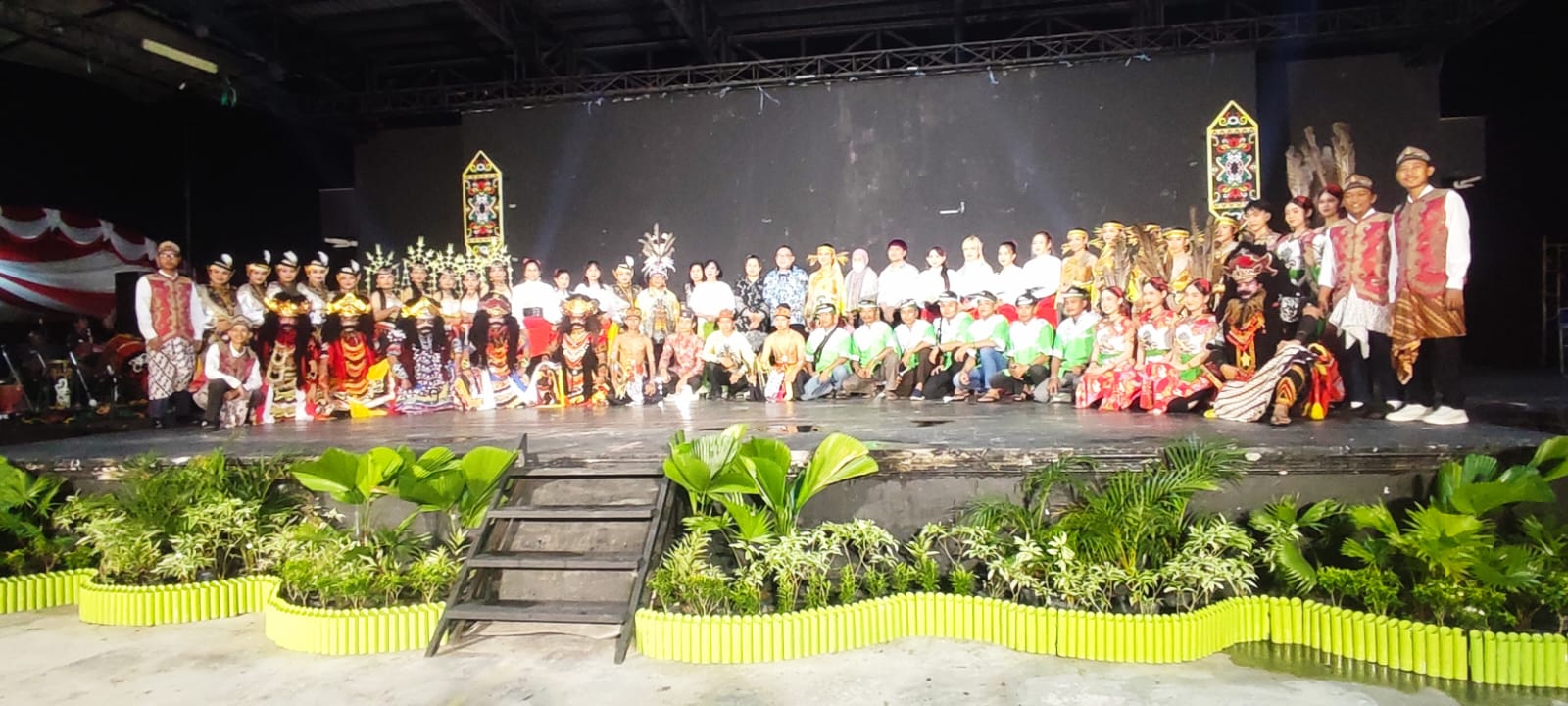 Pertunjukan tersebut dipandu oleh master of ceremony Aan Sawung dan Jessica Maria Fernanda, serta dimeriahkan oleh berbagai grup seni, di antaranya Naya & Friends, SSB Intan Manuah, Wargo Krido Budoyo, Alpha Soul Dance, Borneo Angels, Riakustik, SSB Sawung Batarung, Lelin Line Dance, Karungut Mampung, dan SSB Igal Jue.