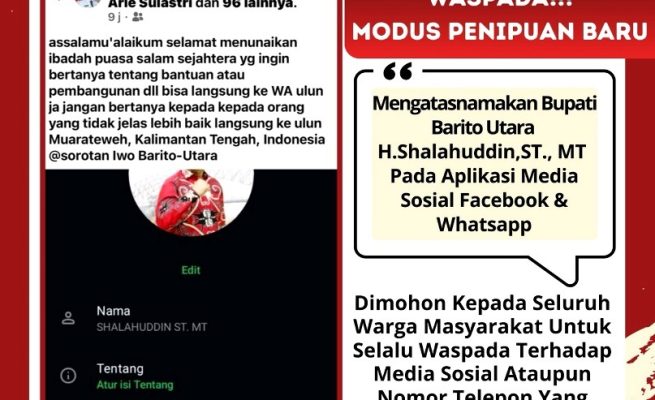 Waspada Penipuan Atasnamakan Bupati Barut, Kadis Kominfosandi Imbau Masyarakat Lebih Hati-hati